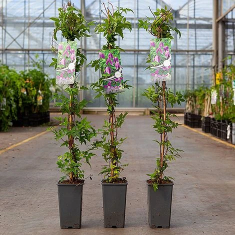 Looking exquisitely fragile and yet superbly robust, Clematis alpina is a tough, mountain species which survives temperatures down to -40 and doesn’t demand any attention. In return, it bears masses of dainty, nodding blue flowers with prominent white stamens from March to mid May, followed by fluffy seedheads. Aside from removing any dead or damaged growth, routine pruning is not required. Grow on a wall or support, scramble up a shrub or plant in a patio container. Height: 3m (9′). Spread: 1.5m (5′).