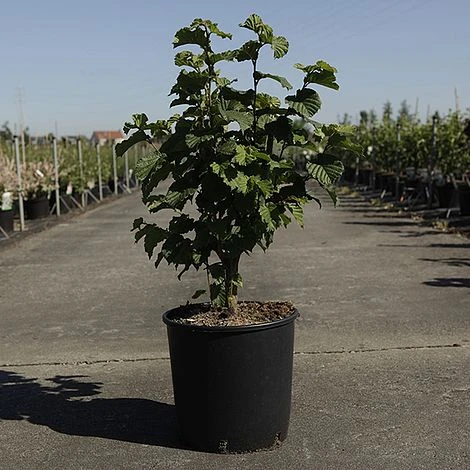 Also known as ‘Hall’s Giant’, the Giant in the name refers to the large-sized nuts and heavy bearing nature of this fruiting variety of cob nut, rather than its overall size. Corylus ‘Merveille De Bollwiller’ is actually a usefully compact variety, reaching only about 3m. It’s an old, late-season cultivar originating in France, that produces high yields of medium to large, glossy brown nuts. Although the nuts are not as large as some modern varieties they are noted for their excellent flavour. They are ready to harvest in October and can be eaten fresh or stored for later use. Attractive, pendulous yellow catkins hang from bare branches in late winter providing additional interest and an early source of food for pollinators. Partially self-fertile, Corylus ‘Merveille De Bollwiller’ produces the best crops when it has at least one different pollination partner including wild hazel. It is a good pollinator of other varieties. Height and spread: 3m (10ft).