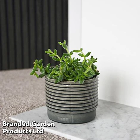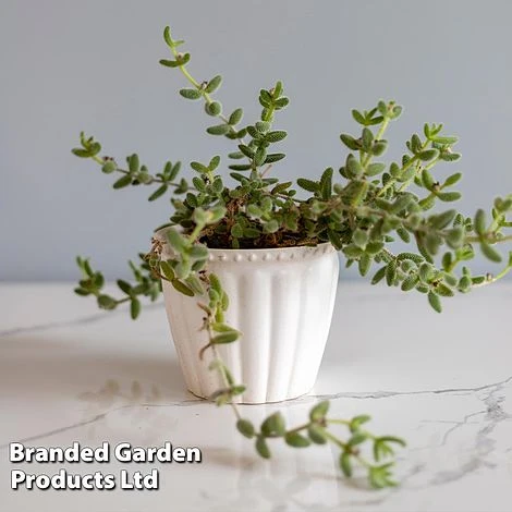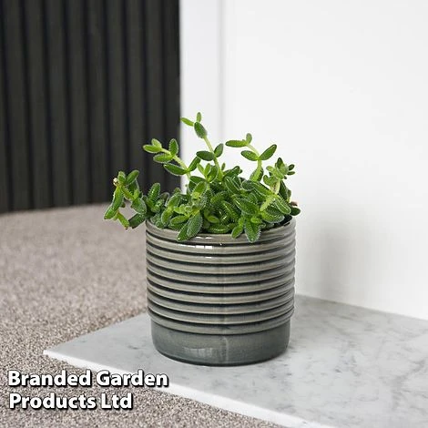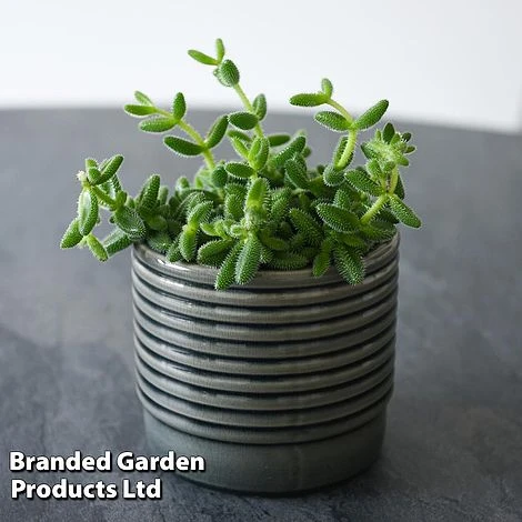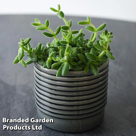 From South Africa comes this cute little succulent, Delosperma echinatum or the Pickle Plant, named after its fat, pickle-like leaves which are smothered in soft, glistening white hairs. With trailing foliage, it makes a pretty plant for tumbling over a decorative container, enjoying bright light and only moderate watering. Small, yellow, daisy-like flowers are occasionally produced in the right conditions. Height and Spread: 30cm (12in).