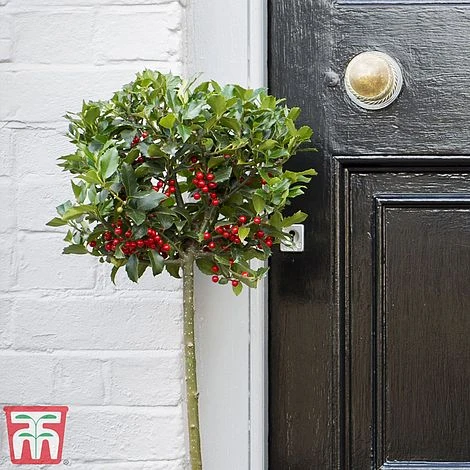 A traditional female variety that looks much like the species with glossy green, spiny foliage and spherical, shiny red berries. In time, this handsome variety forms a narrowly upright, dense evergreen tree that offers useful cover and a valuable source of food for winter birdlife. Once established Holly ‘Green Alaska’ is particularly good at smothering itself in shiny red berries, just in time for Christmas, making a colourful addition to Christmas wreaths and other decorations. This robust evergreen is especially hardy and forms a useful windbreak tree for year round interest in even the coldest gardens.