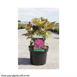 Boasting the most stunning diamond-shaped red flowers in the ‘Magical Series’ family, Hydrangea paniculata ‘Diamant Rouge’ is an exceptional, long-flowered, hardy, deciduous shrub. Sepals appear white in July, turning pink, into a stunning raspberry-red in August. This spectacular shrub is certified by the RHS as a Plant for Pollinators. Flower colour can vary depending on what soil type is provided, but generally Hydrangeas prefer a humus rich acidic soil. Height: 150cm (59″). Spread: 120cm (47″).