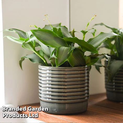 Murdannia loriformis ‘Bright Star’ is an unusual but easy-to-grow houseplant boasting beautiful pointed, wavy-edged leaves that are pale greyish green with a dark green margin. Visible parallel veins running the length of the leaf add further interest, whilst the leaves are held in attractive star-shaped rosettes. Tall, thin spikes of delicate, three-petalled creamy white flowers may occasionally be produced to further enhance the striking foliage display. A beautifully lush plant that will bring a sense of calm to any room. Height and spread: 40cm (16in).