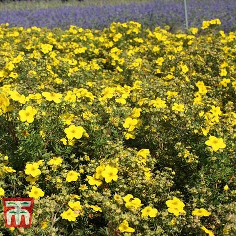 A very popular variety of Shrubby Cinquefoil, Potentilla fruticosa ‘Goldfinger’ produces masses of bright, golden yellow flowers which sit atop the light green foliage throughout the summer and well into the autumn. This hardy, deciduous shrub can be grown into an informal hedge or screen and can be clipped back in spring to help maintain its size. It is equally at home in a shrubbery or at the back of a flower border too. Height: 150cm (59″). Spread: 100cm (39″).